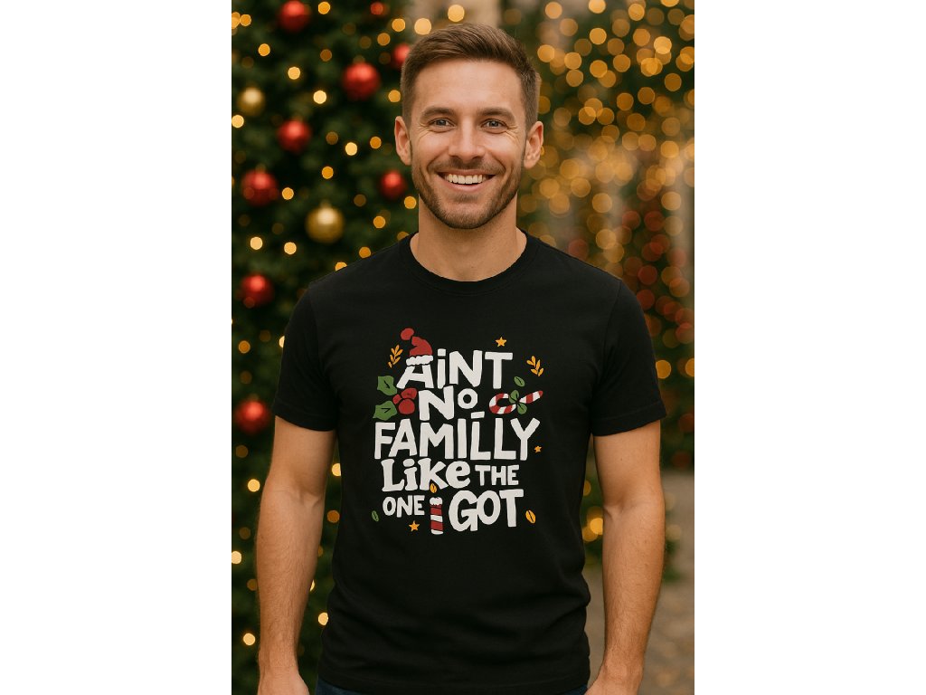 Stylové černé tričko s veselým vánočním potiskem, který oslavuje to nejdůležitější – rodinu. Ideální dárek pro každého, kdo miluje sváteční pohodu a blízké kolem sebe.