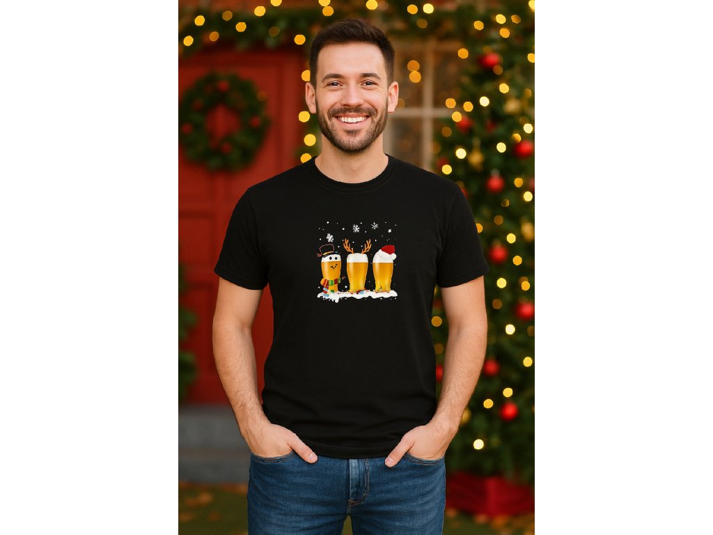 Vánoční tričko s vtipným motivem tří pivních sklenic ve vánočním stylu. Ideální pro každého, kdo bere svátky s nadhledem a úsměvem.