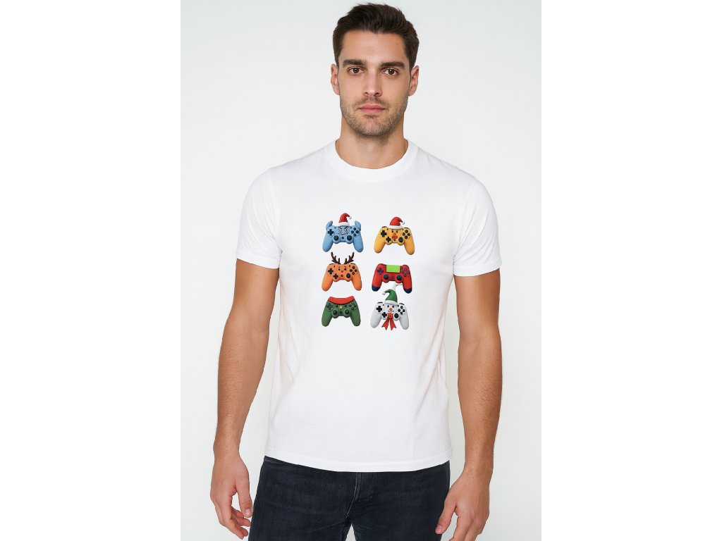 Vánoční tričko s potiskem šesti herních ovladačů v zimním a svátečním stylu. Skvělý dárek pro všechny hráče, kteří chtějí oslavit Vánoce po svém.