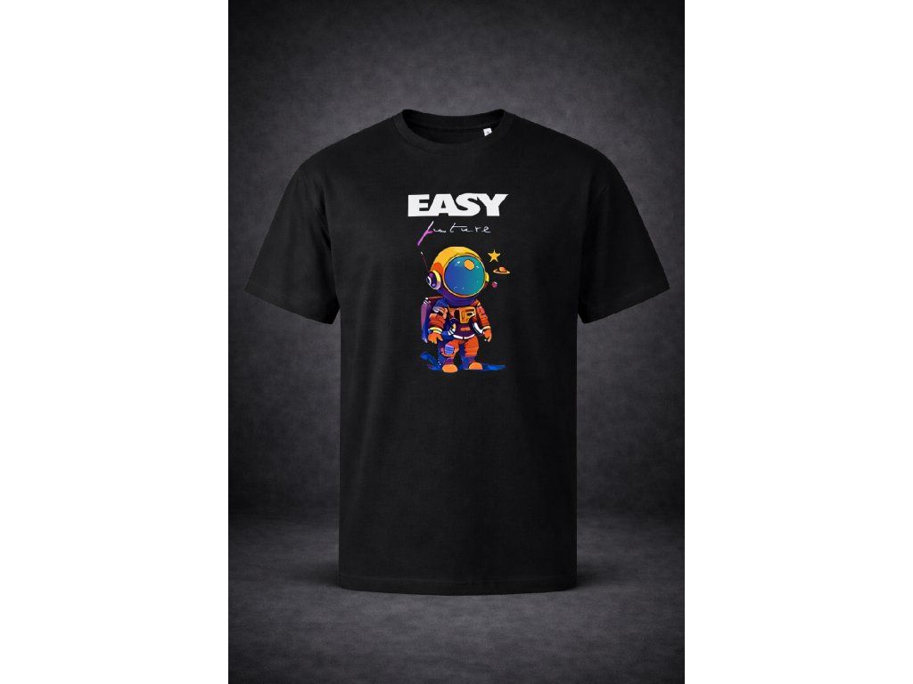 Motiv astronauta doplněný nápisem Easy působí uvolněně a pozitivně. Kontrast barevné grafiky na černém podkladu vytváří výrazný vizuální efekt, díky kterému tričko okamžitě upoutá pozornost.