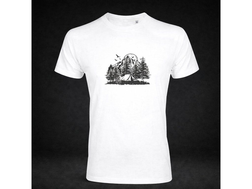 Tričko Wild Camp je inspirované klidem přírody a dobrodružstvím mimo ruch města. Motiv hor, lesa a stanu evokuje chvíle strávené v přírodě, kde člověk zpomalí a užívá si jednoduchost okamžiku.